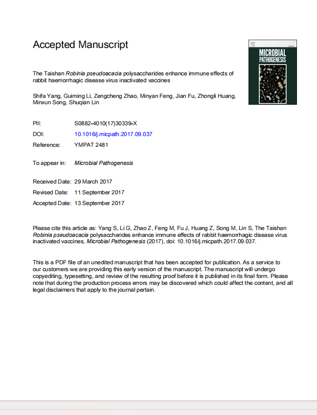 The Taishan Robinia pseudoacacia polysaccharides enhance immune effects of rabbit haemorrhagic disease virus inactivated vaccines